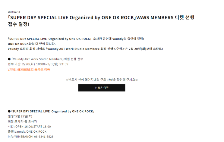one ok rock x vaundy 타이반 라이브 응모 방법 - 바운디 FC편