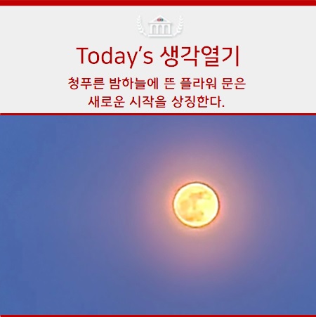 청푸른 밤하늘에 뜬 플라워 문은 새로운 시작을 상징한다. [아침을 여는 생각, 지앤비패럴랙스]