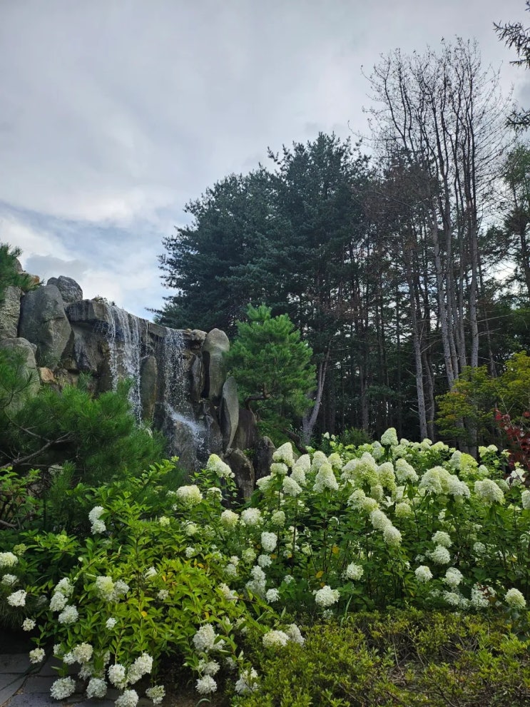 가평 신상 대형카페 몽브레뉴 : 숲 뷰와 폭포, 수국까지 있는 베이커리 카페