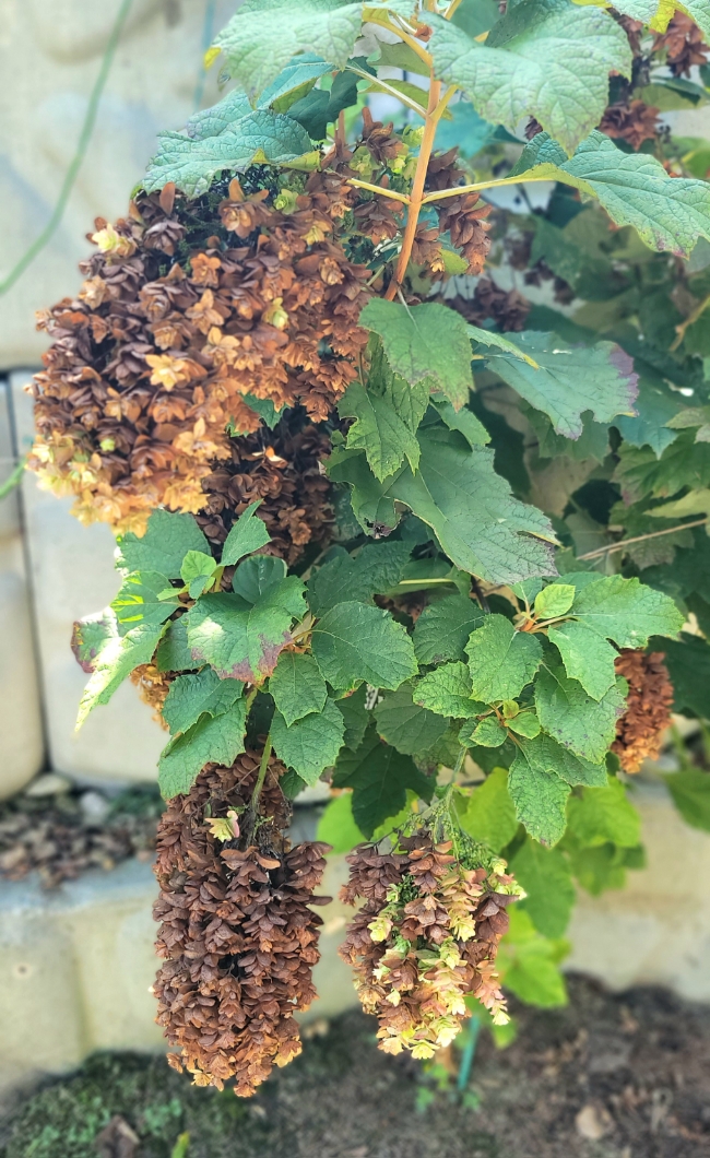 정원 한켠의 떡갈잎수국이 보여준 변화를 1년동안 사진으로 기록해 두었습니다. 처음에는 눈부시게 하얀 꽃...