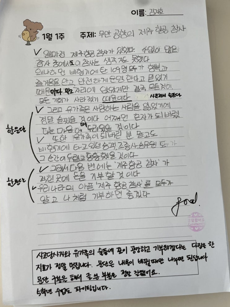 4학년 겨울방학 11일차: 논술학원, 운동