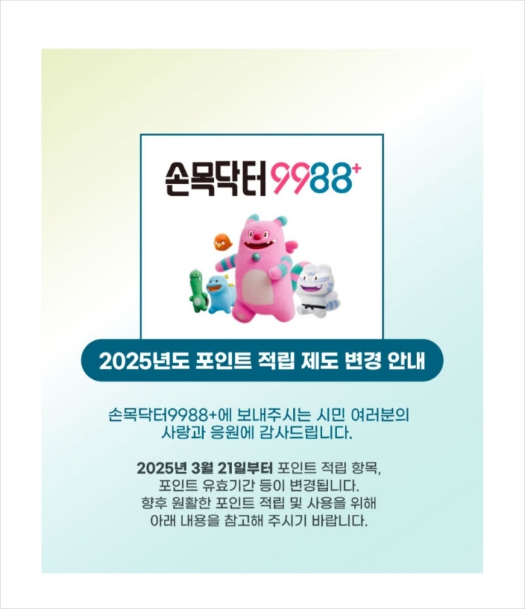 2025년 손목 닥터 9988 포인트 적립 제도 변경:걷기 활동 포인트 당일 24시까지