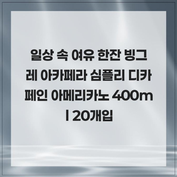 일상 속 여유 한잔 빙그레 아카페라 심플리 디카페인 아메리카노 400ml 20개입