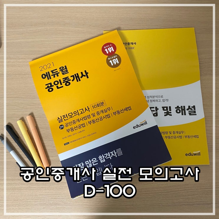 안녕하세요 리뷰er 스쟁입니다. 오늘 소개드릴 아이템은 에듀윌 공인중개사 실전 모의고사입니다. D-100 ...