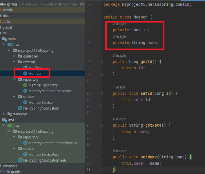 백엔드개발 - 회원도메인, 리포지토리, 서비스 만들어보기!