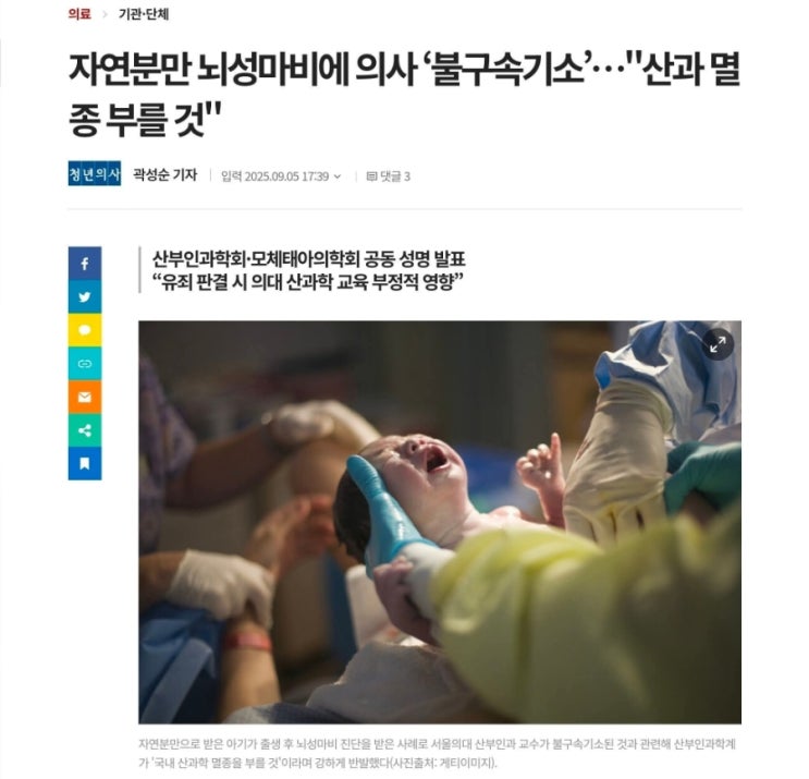 자연분만된 신생아에게 뇌성마비가 발생했다면, 그것은 안타깝지만 결국 해당 아이의 숙명에 가까운 불운이...