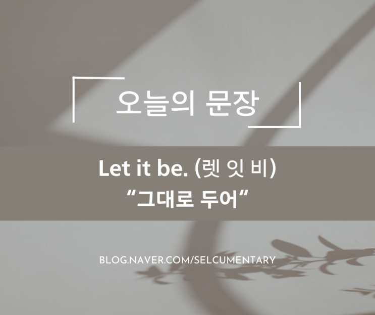 <올드팝 영어> Let it be(렛 잇 비)