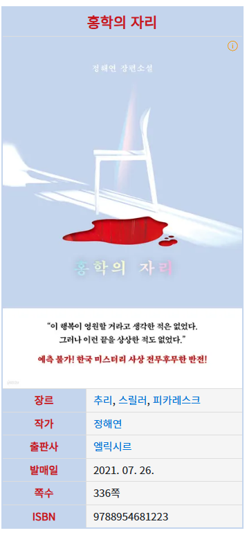 홍학의 자리 정해연 작가 『홍학의 자리』는 한 남자가 사체를 호수에 유기하는 장면으로 이야기의 문을 연...