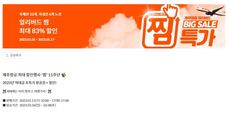 오늘부터 시작하는 제주항공 찜특가 이벤트. 탑승기간은 3월 26일부터 10월 28일까지. 근데 매번 찜특가 행...