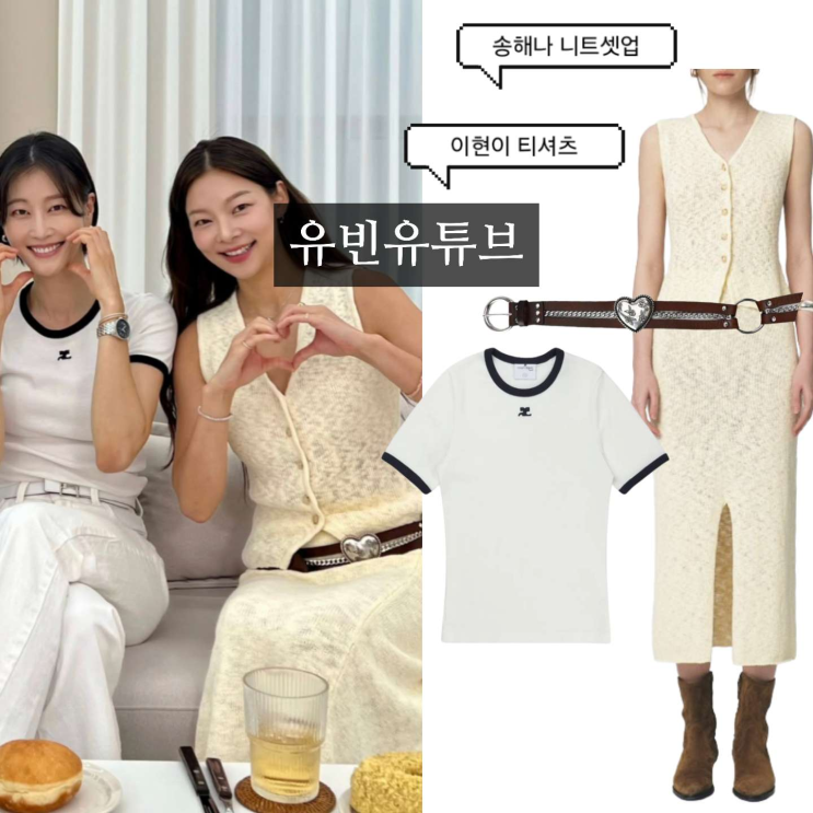 유빈 송해나 니트 셋업 이현이 링거티 티셔츠 착장(+꾸레쥬, 쿠메)
