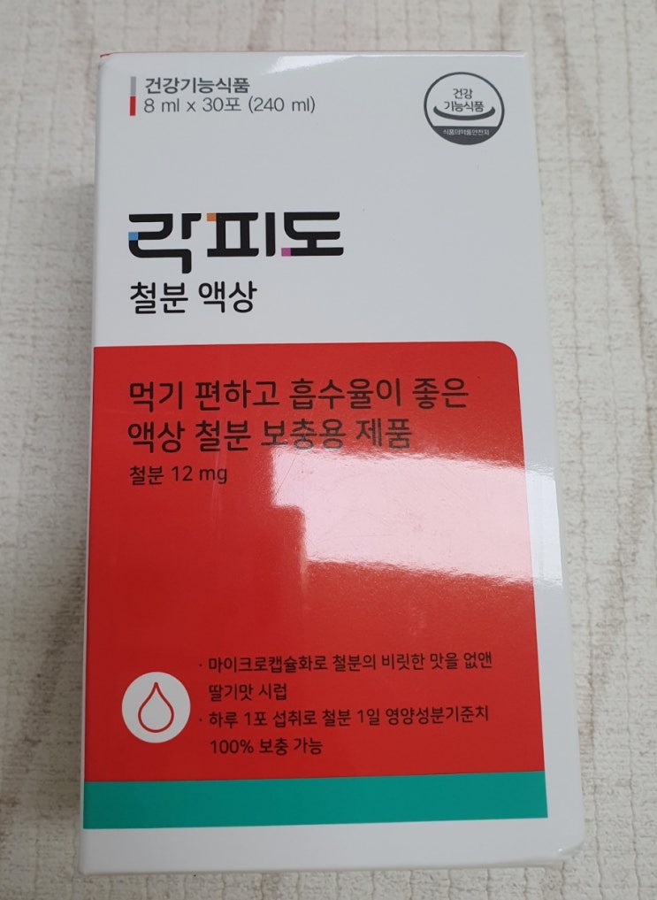 안녕하세요 저 또 영양제 하나 샀어요ㅎ 이번에 구매한건 락피도 철분액상 영양제에요 이렇게 박스포장으로...