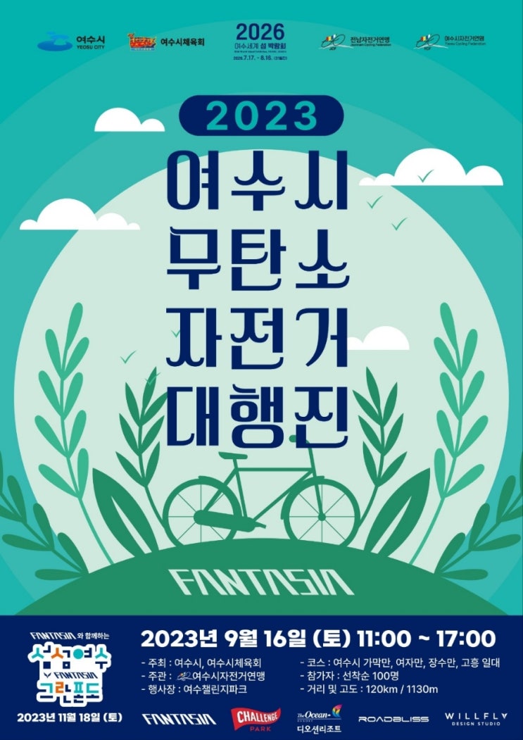 ●2023 여수 무탄소 자전거 대행진 ●일시: 2023년9월16일 토요일 ●거리 : 90km ●획득고도 : 1000이내 ●...