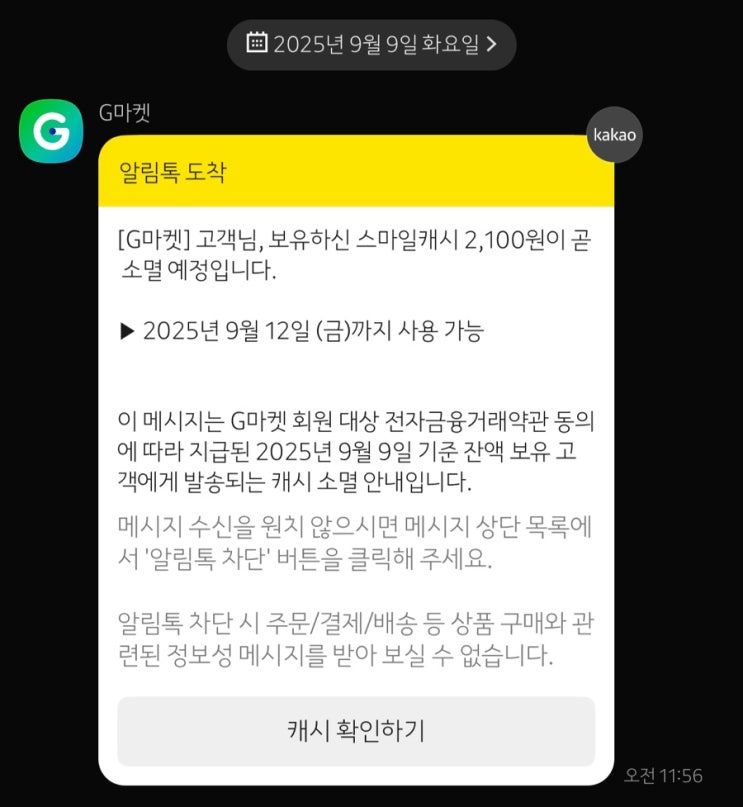 오늘 지마켓에서 스마일캐시 2,100원이 지급되었다. 9월 12일까지 사용가능해서 깜빡하고 사용 못하기 전에...