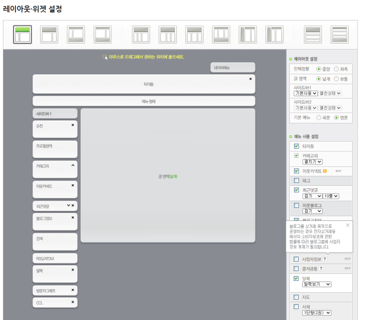홈페이지형 블로그 만들기 2. 레이아웃, 위젯 설정