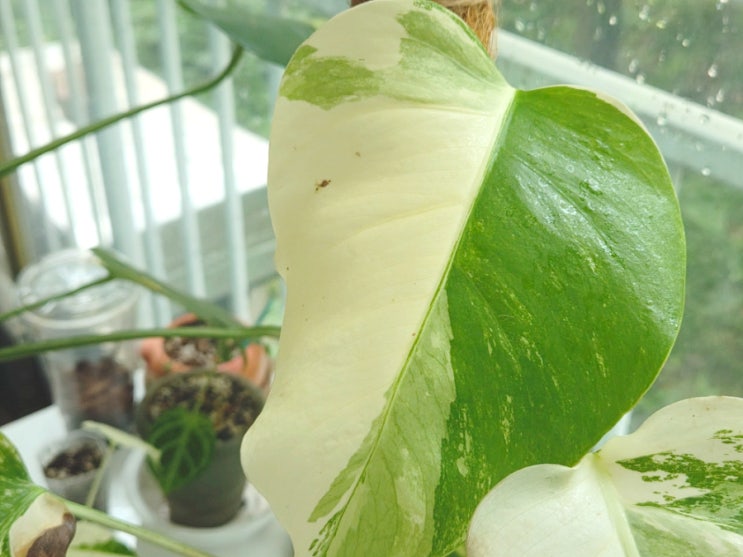 지난 7월 초순 입양 후 첫 잎을 냈다고 보고 했던 #알보몬스테라 가 그동안 잎을 무려 2장이나 냈어요. 무...
