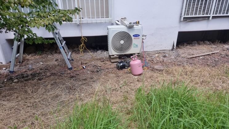 논산 구형 에어컨 설치 ! 냉매 충전 점검 !