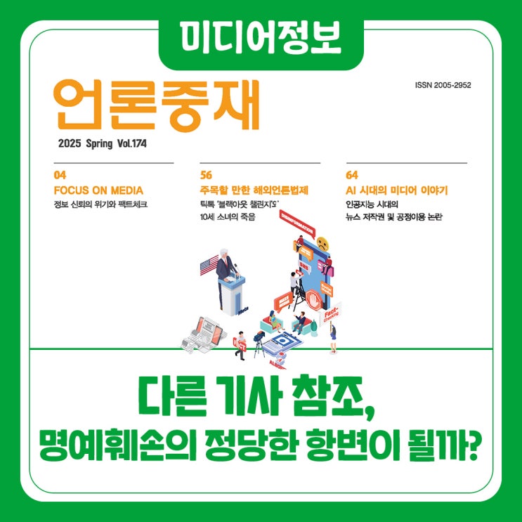 「언론중재」는 1981년 위원회 설립과 함께 창간된 계간지로 위원회 대표 연구 간행물 중 하나입니다. 「언...