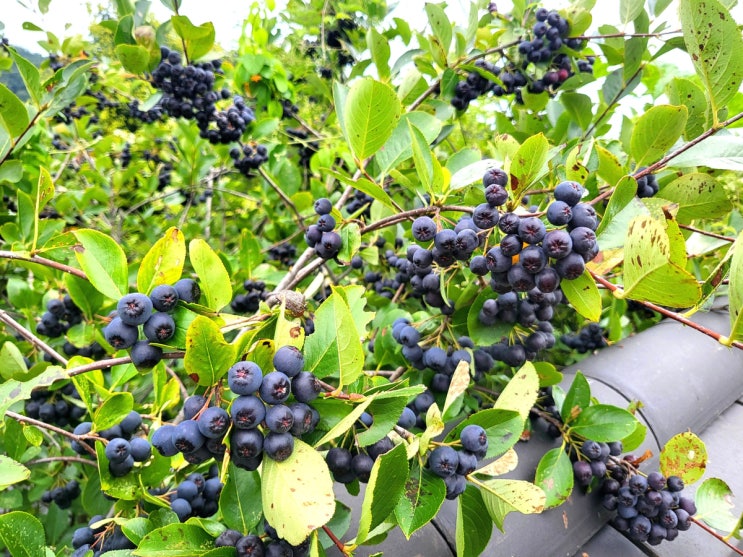 문경의 한 농가 담장에서 본, 장미과 / 아로니아속의 낙엽 활엽 관목이자 그 열매의 총칭인 '아로니아...