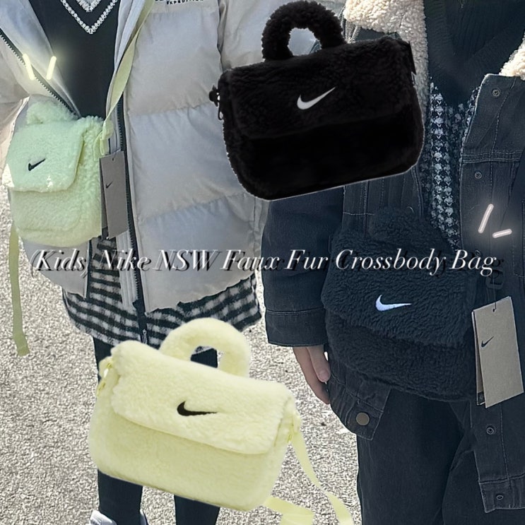 [NIKE] 키즈 나이키 NSW 포우 퍼 크로스바디백 키즈 인조 퍼 크로스바디 백(1L) 블랙 네온 / 조카선물 리뷰 실착 착용 후기