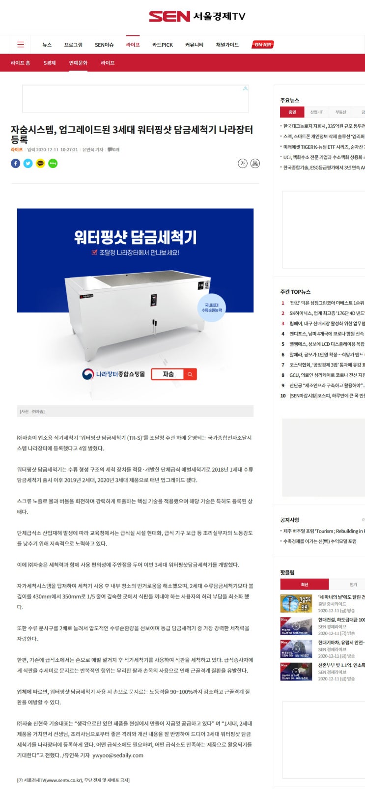 자숨 친환경 식기세척기, 우수발명품 우선구매추천 제품 선정! -발명(고안)의 명칭 : 식기 세척기용 식기 ...