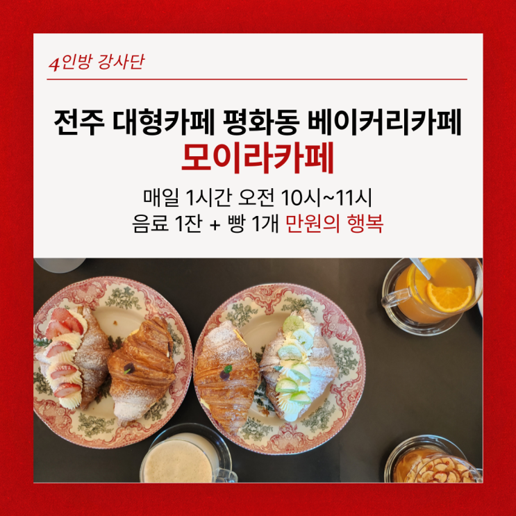전주 대형카페 평화동 베이커리카페 모이라카페 매일 1시간 만원의 행복