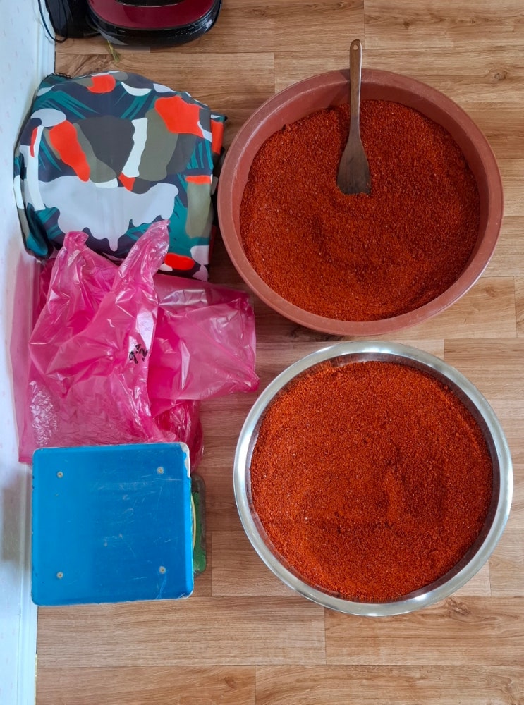 고추 빻기 첫 번째 딴 고추 6kg 두 번째 딴 고추 건조기 부족으로 나누어 말린 2-1 고추 8.5kg 가곡 방앗간...