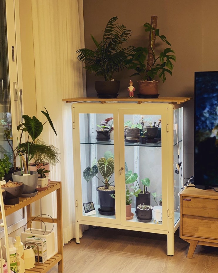 저희집에도 식믈 온실장이 생겼어요~^^ 2주전 필로덴드론 몇 개랑 안스리움 몇 개를 들였어요. 고작 4개 샀...