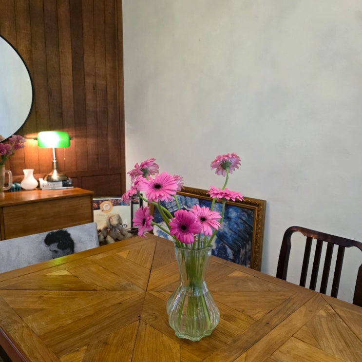 이번주는 핑크핑크하게. 핑크색 거베라와 핑크색 리시안셔스로 테이블을 꾸며봤어요. 가만히 보면 사고 싶...