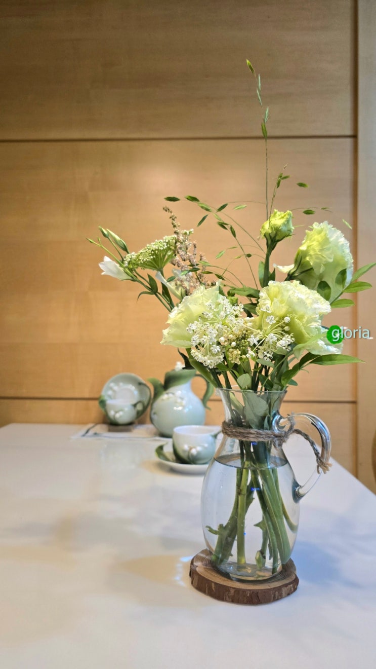 무더위가 기승을 부리던 7월 초 데려왔던 꽃들이에요. 연 그린빛 리시안셔스를 메인으로 하는 작은 소품. ...