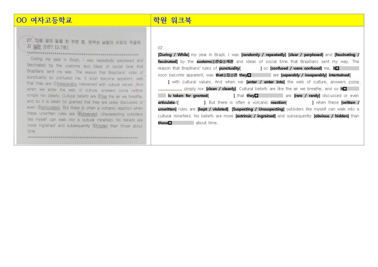 매 시험을 치른 후 학생들 각자 시험지 분석을 합니다 문제유형 분석 틀린 문제 분석 해결방안 학생들은 자...