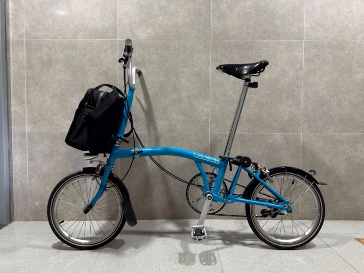 브롬톤을 타고 출근했습니다. 맥북 가방을 꼭 챙겨야 열심히 일할 수 있죠. 그런데, 가방에 자전거가 달려...