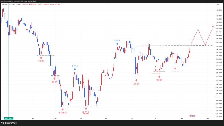 [2025-08-12] 테슬라 주가, Beyond the candles + 기술적 분석 추가