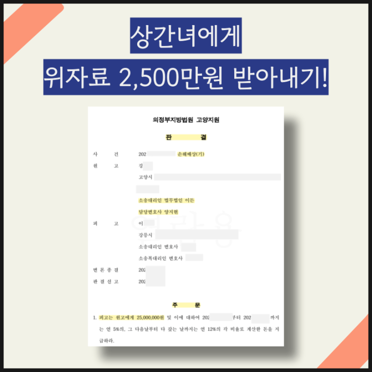 ※ 한 개만 해당되어도 필독! ※ * 상간녀소송위자료를 최대한 많이 받아내고 싶다면 상간녀에게 위자료를 ...