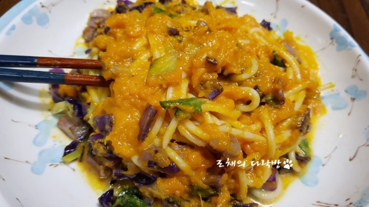 재료: 단호박 1/2 양파 우유 후추 베이컨 적색 양배추 배추 단호박 스파게티, 단호박 파스타 ...