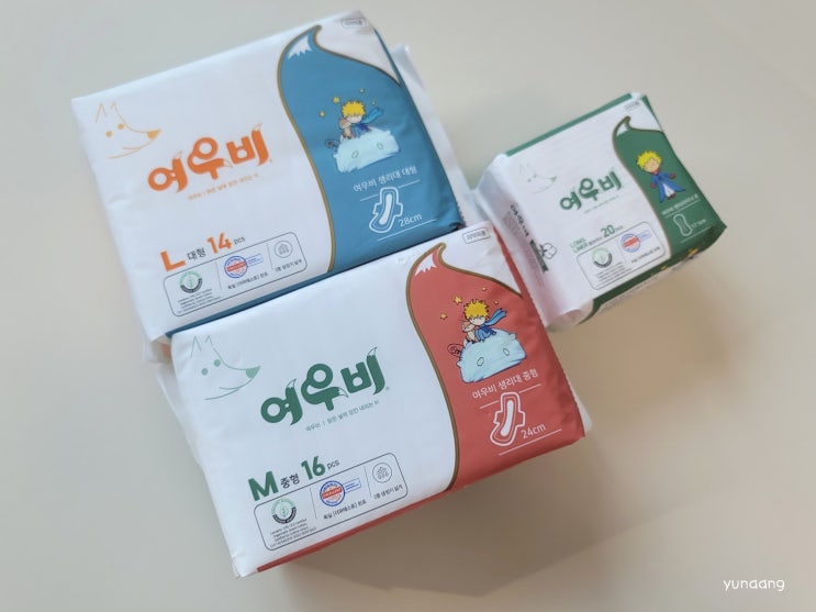 여우비 : 맑은 날에 잠깐 내리는 비 여우비 순면패드 생리대에는 대형, 중형, 팬티라이너 3가지 종류가 있...