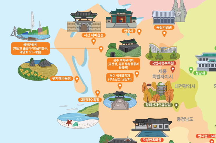 충청북도(5) 대전(1) 세종(1) 충남(8) 한국관광100선 메인
