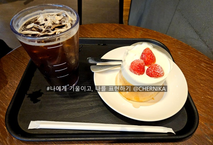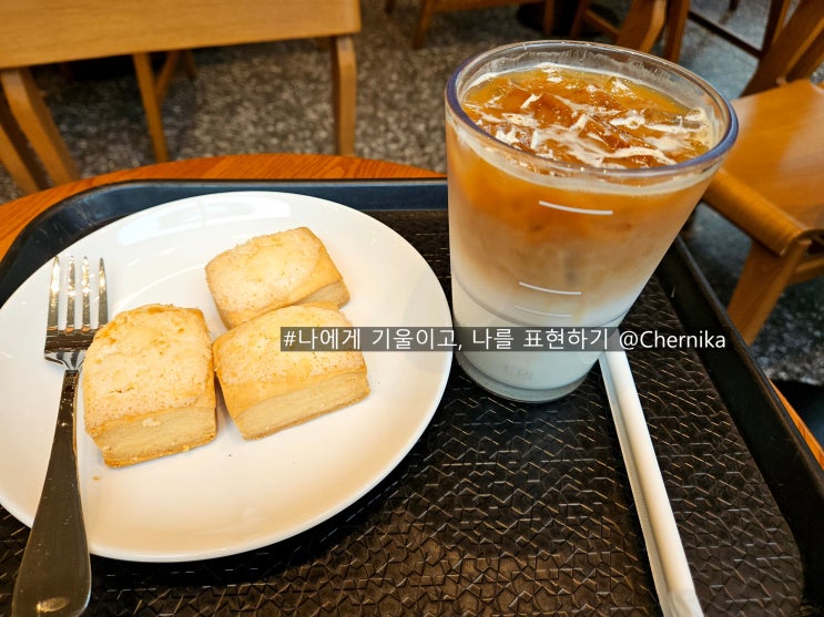 투썸에서 가진 잠깐의 휴식 시간. 아이스 카페라떼랑 레드벨벳 케이크 주문. 투썸 카페라떼는 고소하면서 ...