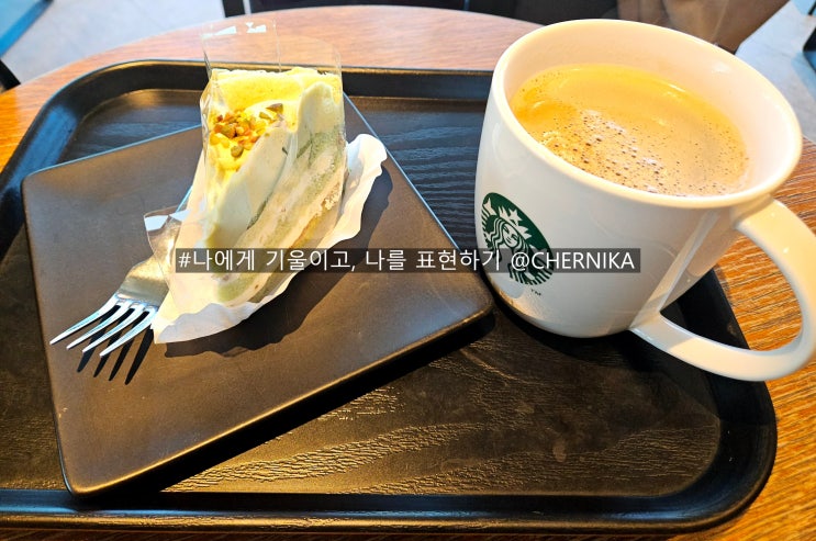 스타벅스- 클래식 피스타치오 케이크, 아메리카노