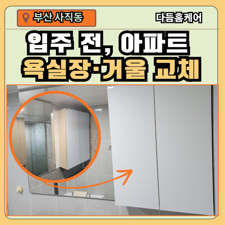 부산 욕실장 교체, 사직동 화장실 거울 설치 고객 문의 세입자가 곧 입주를 한다며 욕실 거울과 욕실장이 ...