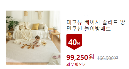 할인가 9만4천원대 데코뷰 베이지 솔리드 양면쿠션 놀이방매트