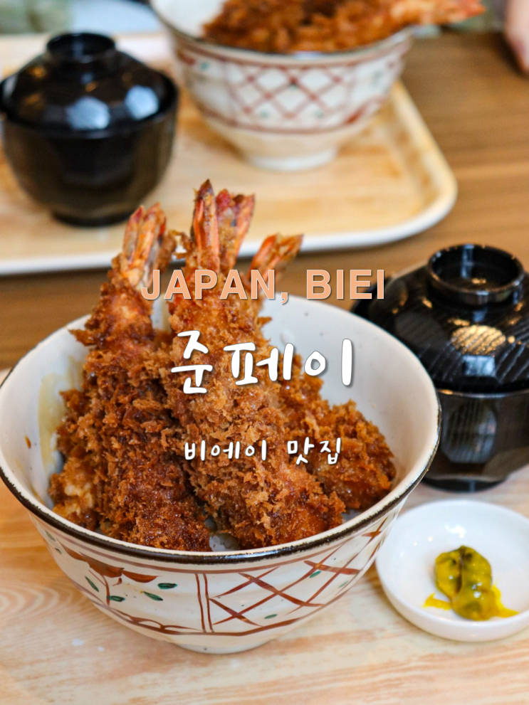 삿포로 여행 비에이 맛집 준페이 메뉴 새우튀김덮밥 두번세번 추천