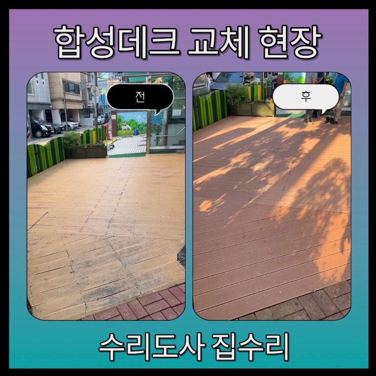 합성목재 데크 시공 가격 인조목 들뜸 교체 업체 안녕하세요 수리도사 집수리 입니다! 오래된 데크 들뜸 때...