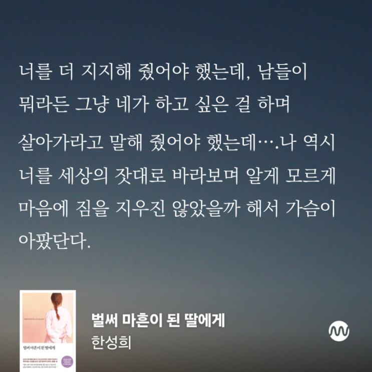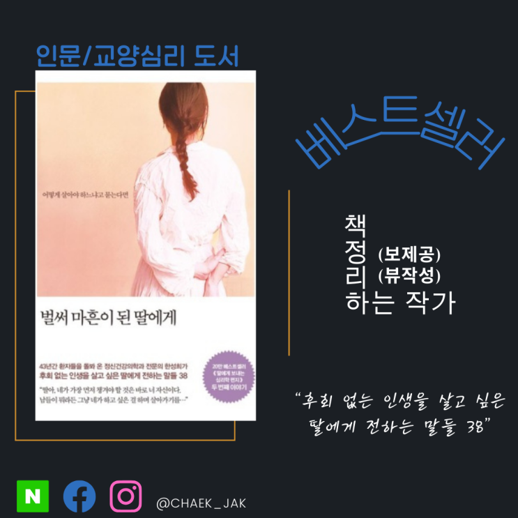 안녕하세요, 책 정리하는 작가입니다. 소개할 도서는 한성희 작가님의 <벌써 마흔이 된 딸에게>입니...