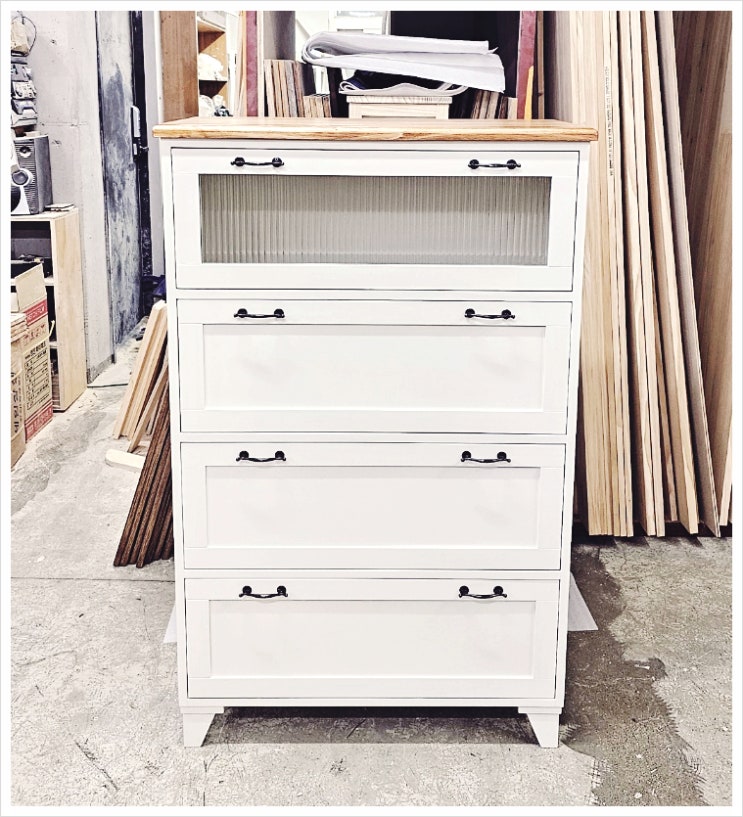 반갑습니다. 오늘의 가구는 미니 서랍장입니다. 간단한 물건이나 문서들을 넣어놓는 용도로 주문해 주신 가...