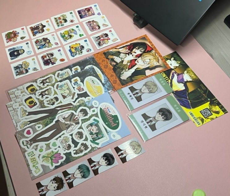 오랜만에 일러스트북을 구매했습니다! 표지를 넘기면 스티커가 있습니다. 모두 칼선이 나있고 예쁩니다.?...
