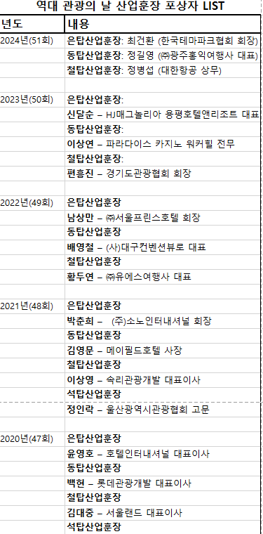 관광의 날 최초 산업훈장을 받은 사람은?