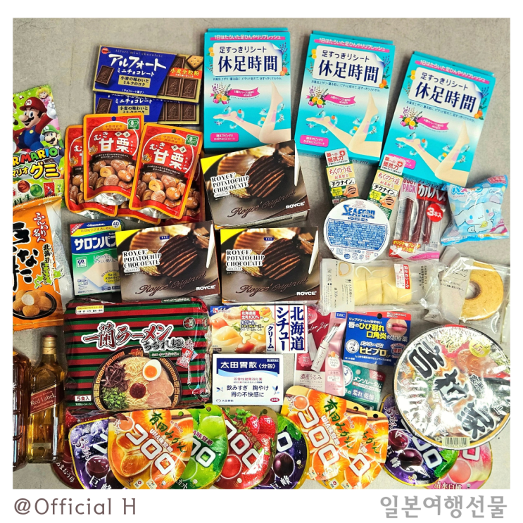 이번 삿포로 여행에 산 기념품들 모아 봤습니다. TOTAL 기념품 샷~ 과자류 시로이 고이비토 파크에 가...