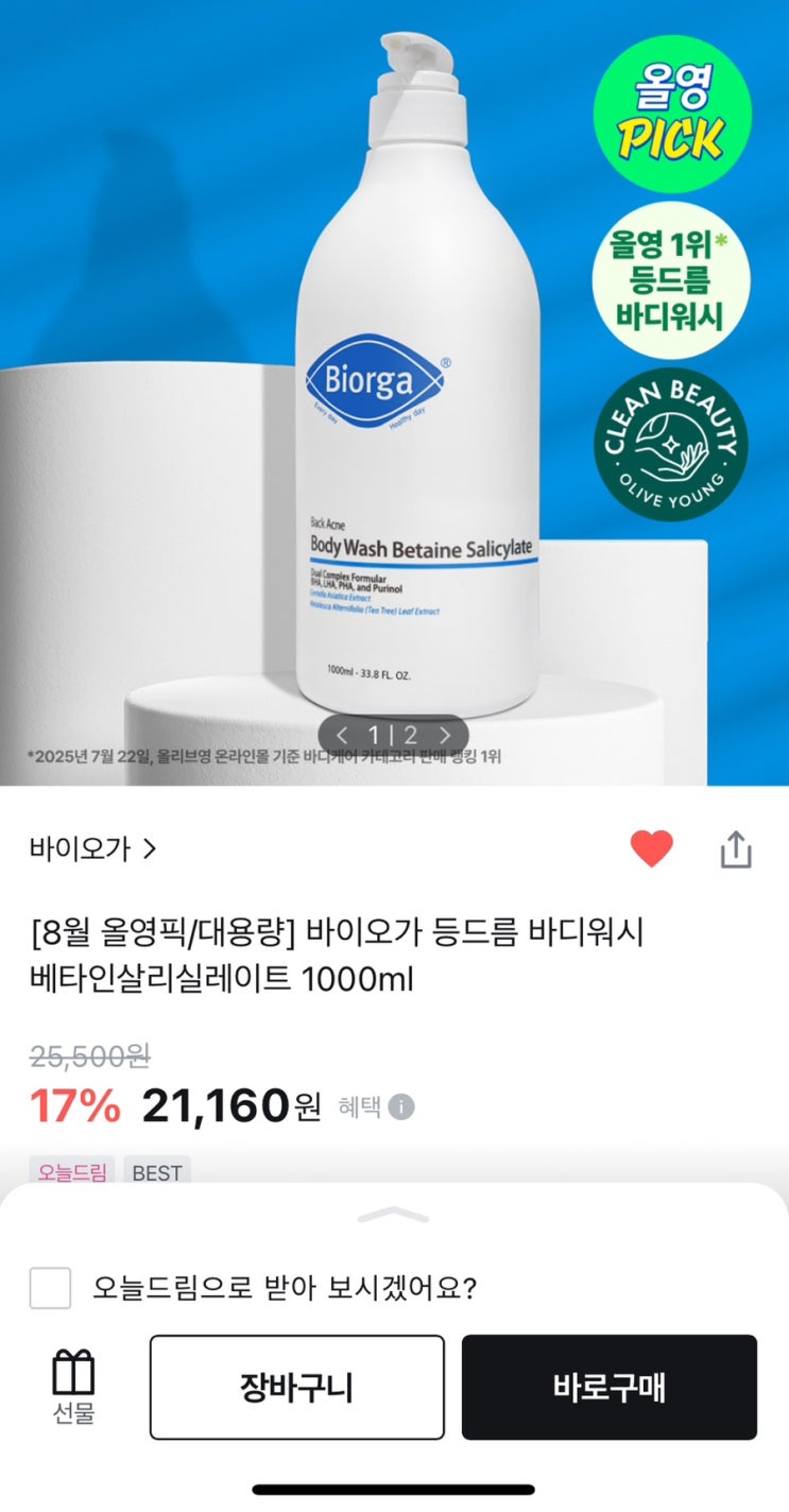 등드름 없애려고 구매한 바디워시 내돈내산 올리브영 바이오가 베타인살리실레이트 바디워시