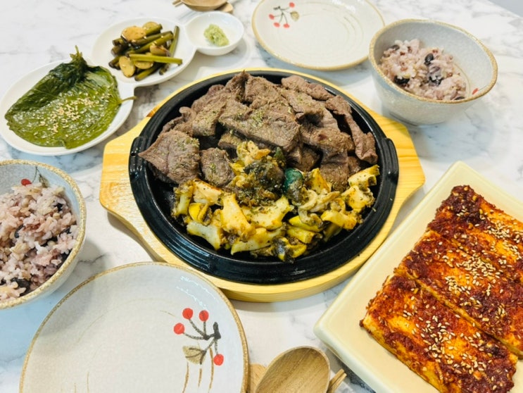 2025.07.28 ~ 2025.08.03 7월 다섯째주 주간 밥상 월요일 밥상 월요일 저녁은 시부모님이 주신 소고기, 전...