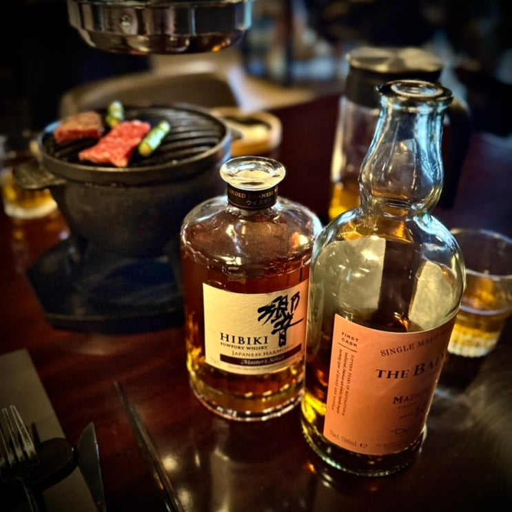 [매봉역-양재역 사이] 우주 / 콜키지프리 / 발베니 15년 마데이라 / 히비키 하모니 / 초벌된 한우를 개인 화로에서 / 1인 7.5만원 한우 오마카세